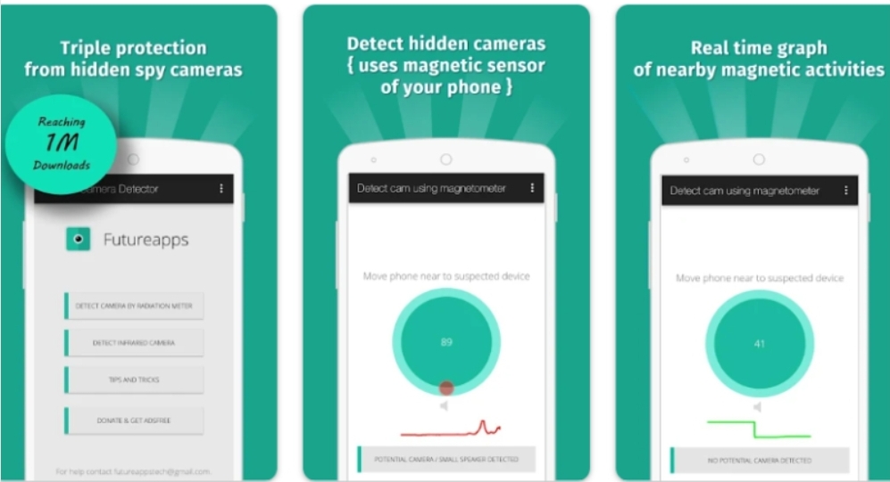 - Magnetometer Detection: Uses your phone’s magnetic sensor to detect the magnetic activity of camera components.